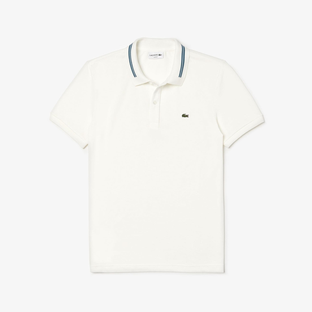 Lacoste Polo Striped Accents Cotton Pique White Green (form Âu)